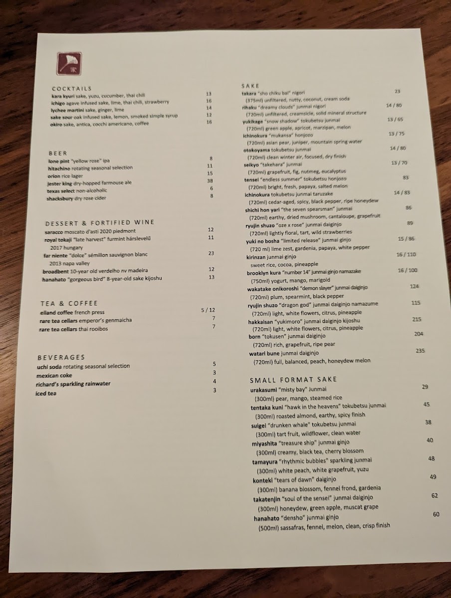 This exquisite dining spot specializes in sushi and sashimi, expertly crafted from the freshest ingredients sourced both locally and from Japan. With three distinct Box options—ichi box, ni box, and san box— patrons can indulge in a stellar selection of flavor-packed creations. Start your journey with the delicate madai nigiri (Japanese sea bream) or the creamy sake toro nigiri (salmon belly), both showcasing the artistry and precision that define Uchi's culinary philosophy. Don’t miss the vibrant chirashi masu, a delightful assembly of kanpachi, bluefin otoro tartare, and ikura over perfectly seasoned sushi rice, cucumber, and avocado—this dish is a feast for both the eyes and taste buds.